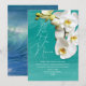 Carte de fête des mères avec orchidées et message de remerciement. Grand script pour le texte du haut. Exemple "Je t'aime Nanna" avec paragraphe pour votre message. De vraies orchidées blanches ornent des cartes bleu-vert sarcelle avec un fond d'eau de mer. Plus d'eau au dos, et le design est disponible en téléchargement instantané ainsi qu'imprimé avec des améliorations de papier.