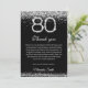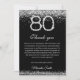 Célébrez un événement important avec notre carte de remerciement pour 80e anniversaire élégante et stylée en argent et noir. Avec des accents de diamants scintillants, cette carte élégante est parfaite pour exprimer votre gratitude après une fête de 80e anniversaire. Personnalisez-la avec des messages de carte d'anniversaire sincères pour remercier vos invités de leur amour et de leurs cadeaux. Imprimée sur du papier de haute qualité, c'est un souvenir chic pour un 80e anniversaire heureux.