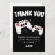 Envoyez une carte de remerciement spéciale à vos amis, les remerciant d'avoir assisté à votre fête et leur exprimant votre gratitude pour leurs cadeaux. Comporte deux manettes de jeu sur fond noir, avec un texte ludique qui dit "MERCI" et "j'ai apprécié le gâteau et le cadeau aussi, mais ma partie préférée était de vous voir ! MERCI D'ÊTRE VENUS À MA FÊTE ET POUR LE CADEAU MERVEILLEUX" et "LEUR NOM. Tous les styles de police et les couleurs de fond peuvent être modifiés en cliquant sur le lien Personnaliser davantage après la personnalisation.