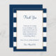 Carte de remerciement pour réception de mariage avec rayures bleues et garniture dorée. Pour les demandes de modifications de conception personnalisées par le concepteur indépendant, veuillez envoyer un courriel à paula@labellarue.com AVANT de personnaliser ou de passer commande.