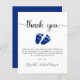 Remerciez vos invités de la baby shower pour votre petit garçon avec cette carte de remerciement mignonne et abordable avec "merci" dans un script élégant avec des fioritures et une aquarelle bleu marine de pieds de bébé. En dessous, vous pouvez facilement personnaliser votre message de remerciement ou laisser en blanc pour une note manuscrite.