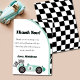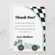 Carte de remerciement pour une fête d'anniversaire verte de voiture de course