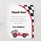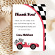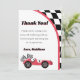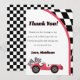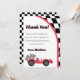 Carte de remerciement pour une fête d'anniversaire de voiture de course rouge