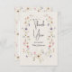 Carte de remerciement plate pour une fête de mariage avec un thème de fleurs sauvages délicates, comprenant une couronne de fleurs sauvages et une image de titre de calligraphie mono-ligne moderne.