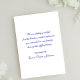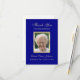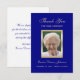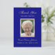 Cette carte de remerciement de deuil de 3,5 pouces x 5 pouces présente votre être cher sur le devant avec un fond bleu marine. Le nom de votre être cher apparaît sous la photo, ainsi que les dates. Au-dessus de la photo, se trouvent les mots "Merci pour votre sympathie". Au verso de la carte, un verset de remerciement apparaît en bleu marine avec un espace pour personnaliser votre nom. Copyright sympathythankyou