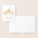La carte de note de remerciement de la petite taille de 4 pouces est affichée en blanc avec une empreinte réelle en or déchargée d'une couronne. Ajoutez votre texte à l'intérieur si vous le souhaitez. Customisez cette carte et modifiez le texte ou achetez tel quel. Image stock