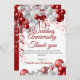 Un carte de remerciements glamour du 15e anniversaire de mariage. Cet élégant anniversaire de mariage rouge merci contient un design de ballon de célébration. Customisez complètement le texte correspondant à votre propre événement.