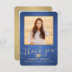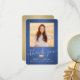 Carte De Remerciements 2 Photo Nouvelle Adresse Brossé Bleu & Or Graduati