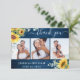 Carte De Remerciements 3 PHOTO Fleurs de soleil Eucalyptus Bleu Bois Rust