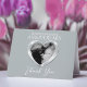Carte de remerciement pour 70e anniversaire de mariage en platine. Excellent moyen de dire merci à vos invités spéciaux pour leur 70e anniversaire de mariage en platine. Personnalisez avec les noms des heureux couples et la photo dans le cadre photo à effet de cœur en platine sur le devant et une photo de votre passé ou de votre récent mariage à l'intérieur, ainsi que votre message personnel. Conception et art à effet de cœur en platine gris par Sarah Trett pour www.mylittleeden.com