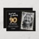 Elégante fête de quatre-vingt-dixième anniversaire, cartes de remerciement avec un arrière - plan noir élégant qui peut être changé à n'importe quelle couleur, une photo de la fille / garçon d'anniversaire, parties scintillant brillante or, quatre-vingt-dix ballons d'hélium or, et un modèle de remerciement moderne qui est facile à personnaliser.