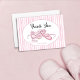 This lovely baby shower thank you card features watercolor pink ballet shoes adorned with roses with pink watercolor stripes. You can personalize this card with your own name by clicking the edit/personalize button. The inside is intentionall left blank so you can write a personal message. This charming invitation is part of the Ballet Shoes and Roses baby shower suite.