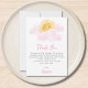 This cute girl's baby shower thank you card is decorated with a yellow watercolor sun, clouds, and stylish pink typography. Easily customizable. Original Watercolor © Michele Davies.