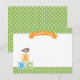Baby shower moderne à thème alphabet merci les cartes de notes pour un bébé garçon disposent d'un mignon petit oiseau perché sur des blocs de lettres ABC, un titre de bannière, une bordure à pois polka, et un schéma de couleurs contemporain de vert feuille, bleu ciel, orange et marron mocha.