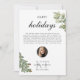 Une belle conception de pin incorporant 1 de vos propres photos et votre QR Code. Cette élégante carte de Noël Immobilier est idéale pour tous les courtiers qui contactent leurs propriétaires pour la saison des Fêtes. Une façon simple et professionnelle de promouvoir votre entreprise et de remercier vos clients. Une carte de Noël parfaite pour les agents immobiliers, courtiers etc. Personnalisez vos détails pour créer votre propre carte de visite unique.