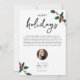 Une belle conception incorporant 1 de vos propres photos et votre QR Code. Cette élégante carte de Noël Immobilier est idéale pour tous les courtiers qui contactent leurs propriétaires pour la saison des Fêtes. Une façon simple et professionnelle de promouvoir votre entreprise et de remercier vos clients. Une carte de Noël parfaite pour les agents immobiliers, courtiers etc. Personnalisez vos détails pour créer votre propre carte de visite unique.
