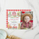 Célébrez la journée spéciale de votre petit avec cette jolie invitation photo sur le thème de la ferme! Avec des animaux de basse-cour et de l’espace pour la photo de votre enfant, il est parfait pour une fête d’anniversaire de style champêtre. Personnalisez avec vos détails pour un invitation inoubliable !