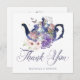 Remerciez vos invités avec notre magnifique carte de remerciement de mariage sur le thème d'Alice au Pays des Merveilles, dans un style vintage. Parfaite pour un mariage sur le thème d'Alice au Pays des Merveilles. Le design présente une théière vintage avec un mélange de nos florales originales dessinées à la main et de nos illustrations. Nous avons méticuleusement restauré les illustrations vintage iconiques d'Alice au Pays des Merveilles en les dessinant à la main et en leur donnant vie avec de subtils tons d'aquarelle et notre propre touche personnelle. Le design présente nos fleurs en aquarelle originales dessinées à la main et un papillon. Des associations de textes élégants et vintage améliorent ce thème magique, fantaisiste et iconique d'Alice au Pays des Merveilles. Conçu par Moodthology Papery