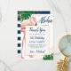 Carte De Remerciements Aloha Flamingo Bleu Or Tropical Anniversaire