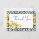 Amalfi Positano Vietri carreaux majoliques bleus citrons douche de mariée mariage fête remerciement carte, thème méditerranéen bleu blanc et jaune douche de mariée mariage remerciement carte.