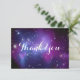 Une jolie photo d'espace d'amas de galaxies violet et bleu avec un design de mariage de calligraphie manuscrite fantaisiste contemporain blanc.