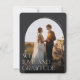 Les cartes de remerciement de mariage élégantes comportent une seule photo mariage verticale ou portrait dans une disposition voûtée unique. "Avec amour et gratitude" est recouvert de lettres blanches embellies serif, avec vos noms en dessous courbés le long du côté. Ajoutez un message personnel et une signature à l'arrière, ainsi qu'une photo supplémentaire.
