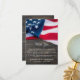 USA American Flag Memorial Funeral Carte de remerciements. Ce carte de remerciements funéraire militaire est orné d'un drapeau des États-Unis d'Amérique sur un arrière - plan en bois foncé. Personnalisez ce carte de remerciements de drapeau américain avec votre message personnel et votre nom. Ce carte de remerciements funéraire du drapeau américain sera un trésor. Parfait pour des funérailles militaires, un service commémoratif vétéran ou la célébration de la vie. In Loving Memory Military Memorial drapeau américain. DROIT D'AUTEUR © 2020 Judy Burrows, Black Dog Art - Tous droits réservés. Carte de remerciements funéraire militaire commémorative du drapeau américain