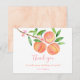 Ce carte de remerciements d'anniversaire mignon présente des pêches à l'aquarelle peintes à la main, des fleurs de pêche et des feuilles vibrants.