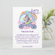 Avec la phrase fantaisiste "C'est parti !" dans un script violet captivant, cette carte de remerciement donne le ton pour une journée remplie d'excitation et de joie. L'illustration inspirée des années rétro de patins à roulettes de couleurs pastel ajoute une touche de nostalgie et de charme au design, attirant les invités de tous âges.