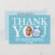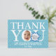 Un Carte de remerciements d'anniversaire amusant avec une blague de bébé. Simple thème bleu étoiles. Vous pouvez créer un Carte de remerciements original amusant en remplaçant simplement la photo du visage carré que vous avez par un échantillon de photo. Vous customisez également votre propre carte en échangeant les quatre photos à l'arrière. Partagez les merveilleux moments de la fête d'anniversaire avec votre famille et vos amis, accompagnés de gratitude, avec cette carte de remerciements. Il est parfait pour une fête d'anniversaire pour bébé et ravira votre famille et vos amis. S'il vous plaît glissez dans une petite boule d'humour dans la bulle de la parole !