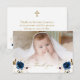 Carte De Remerciements Aquarelle Bleu Floral Gold Boy Photo Baptême