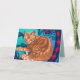 Aquarelle de chat tabby orange mignon sur la courtepointe brodée multicolore, avec Merci tellement pour votre message d'accueil à l'intérieur de la carte