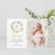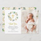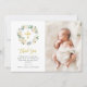 Ce carte de remerciements Baptême ou Baptême élégant et branché présente de belles fleurs d'aquarelle en ivoire avec des feuilles verts sur un arrière - plan blanc propre. Une couronne fleurie entoure une fausse croix d'or. Ajoutez la photo de votre bébé pour la rendre encore plus spéciale.