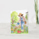 Cette carte de notes présente un portrait aquarelle d'une femme arrosant son jardin.