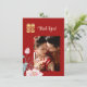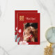 Ce carte de remerciements de mariage chinois présente une photo personnalisée, un double symbole de bonheur doré, et une fleur de lotus aquarelle peinte sur un arrière - plan rouge rubis et un élégant script classique.