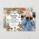 Carte de remerciement de photo de fête d'anniversaire de fille ladybug magique super mignonne. Le design présente une photographie de l'enfant qui fête son anniversaire, des fleurs colorées et du feuillage vert et des accents en faux or, de petites coccinelles rouges mignonnes, des champignons et une petite maison de fée. Parfait pour le premier anniversaire d'une petite fille, mais pourrait également être pour tout âge. Le modèle moderne est facile à personnaliser.