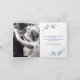 Photo mariage Carte de remerciements d'aquarelle bleu et blanc. Le texte avant comprend : Merci ! L'intérieur gauche inclut votre photo Mariage préférée. L'intérieur droit comprend : Votre message de Merci et les prénoms de la mariée et de la chambre. Pour personnaliser, insérez simplement votre image dans notre modèle facile. Cliquez sur REMPLIR pour couvrir la zone de page. Ensuite, insérez votre message de Merci et les noms de mariée et de chambre dans le modèle, en remplaçant le texte de l'exemple. Assurez-vous de voir la collection complète d'aquarelles bleues et blanches pour les cartes et accessoires correspondants.