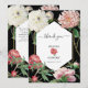 Une belle aquarelle rose et blanc peonies fleurissent design mariage avec cadre géométrique or sur un arrière - plan noir. Un design unique qui utilise des fleurs de pivoines botaniques vintages dans les tons rose et blanc. Un élégant design floral rose et blanc peonies avec une touche de verdure. Un design chic de cadre géométrique mariage de cadre doré avec des éléments modernes. Des invitations de mariage et d'autres articles de papeterie sont également disponibles.