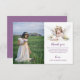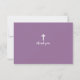 Simple et classe, cette élégante aquarelle design de petit ange est le moyen parfait d'envoyer votre plus grande gratitude aux amis et à la famille qui ont assisté au baptême de votre fille, à la première communion sainte ou au baptême. Le dos est assorti d'une couleur violet assortie d'une croix blanche et d'un texte blanc qui dit "merci". Tout le texte est personnalisable pour correspondre à votre propre salutation et le nom de l'enfant.
