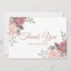Un design d'aquarelle élégant de grands roses dans les tons rose clair et rose poussiéreux sur un arrière - plan blanc. Le dos de la carte a le même arrière - plan avec un petit arrangement floral au centre. Vous pouvez ajouter vos noms dans le menu "modifier la conception". Cette carte de remerciements fait partie d'une belle suite mariage assortie qui peut être entièrement personnalisée.