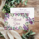 Express gratitude sincère avec cette carte de remerciement florale élégante avec roses d'aquarelle, lilas et verdure dans les tons mauve, lavande et menthe. L'avant présente un simple "Merci" en écriture gracieuse, tandis que l'arrière offre un espace pour un message personnalisé à vos amis et votre famille. Parfait pour les fêtes d'anniversaire, les douches nuptiales ou toute occasion qui demande une touche réfléchie d'élégance florale.