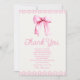 Carte De Remerciements Arc en ruban rose coquette Shower de mariage