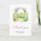 Joli Carte de remerciements mariage avec arc fleuri et fleurs violettes roses. Parfait pour un mariage de printemps ou d'été. Les mots peuvent être changés en fonction de vos propres détails ou exigences