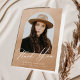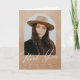 Élégant carte de remerciements de graduation avec la photo du diplômé à l'intérieur d'une arche avec un arrière - plan couleur sable beige aquarelle. "Merci" est affiché dans un script de calligraphie moderne blanc avec le nom du diplômé, l'école, et l'année d'études montré ci-dessous. L'intérieur du carte de remerciements de graduation photo offre de l'espace pour votre message dactylographié ou manuscrit. Le dos de la carte est muni d'un arrière - plan couleur sable.