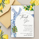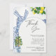 Exprimez votre gratitude avec cette élégante carte de remerciement inspirée de l'Italie, parfaite pour une baby shower italienne La Dolce Vita ou un thème de baby shower à Positano. Avec des designs vibrants de citrons et une verdure luxuriante rappelant la côte amalfitaine, cette carte capture la chaleur et le charme d'une célébration estivale méditerranéenne. Le design intemporel se marie parfaitement avec n'importe quelle décoration de baby shower méditerranéenne, ce qui en fait le moyen idéal pour remercier vos invités d'avoir partagé votre journée spéciale. Commandez maintenant pour ajouter une touche d'Italie à vos notes de remerciement sincères !