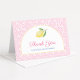 Un design de carte de remerciement féminin et élégant avec une impression de carreaux vintage recolorée en rose et un citron aquarellé. Un design flexible qui pourrait être utilisé pour une carte de remerciement de fête de bébé ou de fête de mariage ou une carte personnelle.