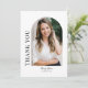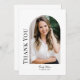 Ce carte de remerciements design moderne de graduation de photo dispose d'une arche photo verticale avec le texte "merci" en typographie élégante avec nom de script personnalisable et texte supplémentaire sur le devant pour ajouter "Classe de 2025" ou votre choix de texte. Arrière - plan blanc avec texte noir. Le dos est vide pour votre message manuscrit personnel. Cliquez sur le bouton Modifier pour personnaliser cette conception.