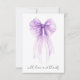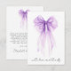 Carte de remerciement élégante pour une douche de mariage avec un magnifique nœud papillon coquette aquarelle violet et « avec amour et remerciements » dans un script chic. Au verso, personnalisez votre message de remerciement dans une typographie moderne simple et ajoutez votre nom dans un script ressemblant à une signature, ou laissez vide pour une note manuscrite.
