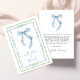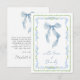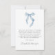 Carte de remerciement de mariage chic et fantaisiste avec un cadre aquarelle floral bleu et vert vintage grandmillénaire, un ruban bleu élégant et "avec amour + merci" dans une écriture calligraphique bleue. Au verso, personnalisez votre message de remerciement avec une écriture moderne simple et ajoutez votre nom dans une écriture semblable à une signature, ou laissez vide pour des notes manuscrites.