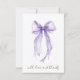 Carte de remerciement élégante pour une douche de mariage avec une aquarelle violet clair d'un magnifique noeud coquette et "avec amour et remerciements" dans un script moderne chic. Au dos, personnalisez votre message de remerciement avec une écriture simple et ajoutez votre nom dans un script ressemblant à une signature, ou laissez vide pour une note manuscrite.